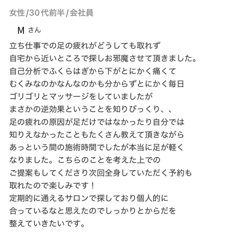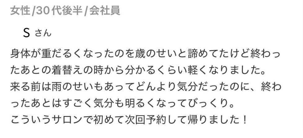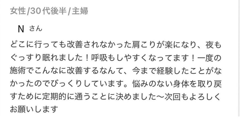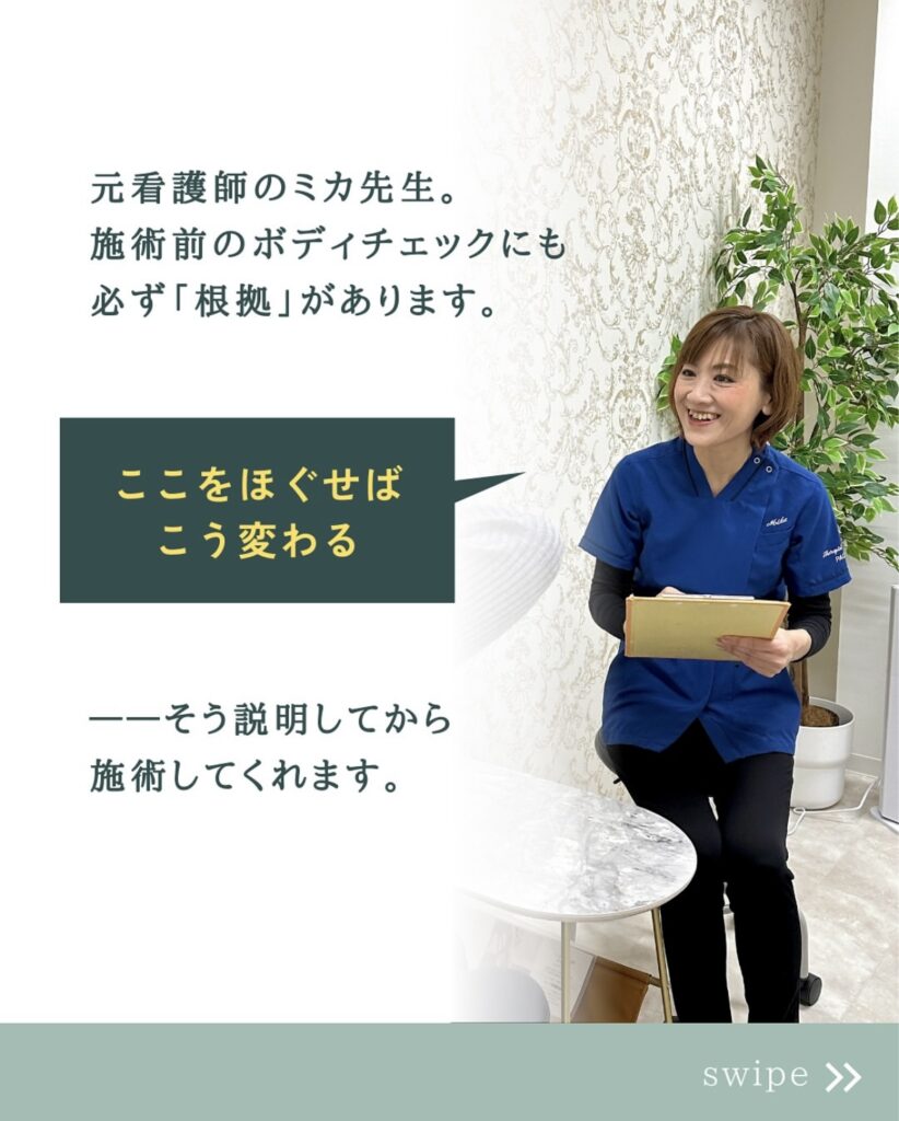 あなたの身体にとって“本当に必要な施術”を見極めて行うから、1回の施術でも変化を実感される方が多数です。