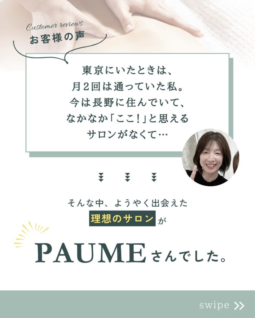 Paumeでは「その日の体の状態」に合わせて施術内容を毎回カスタマイズ。