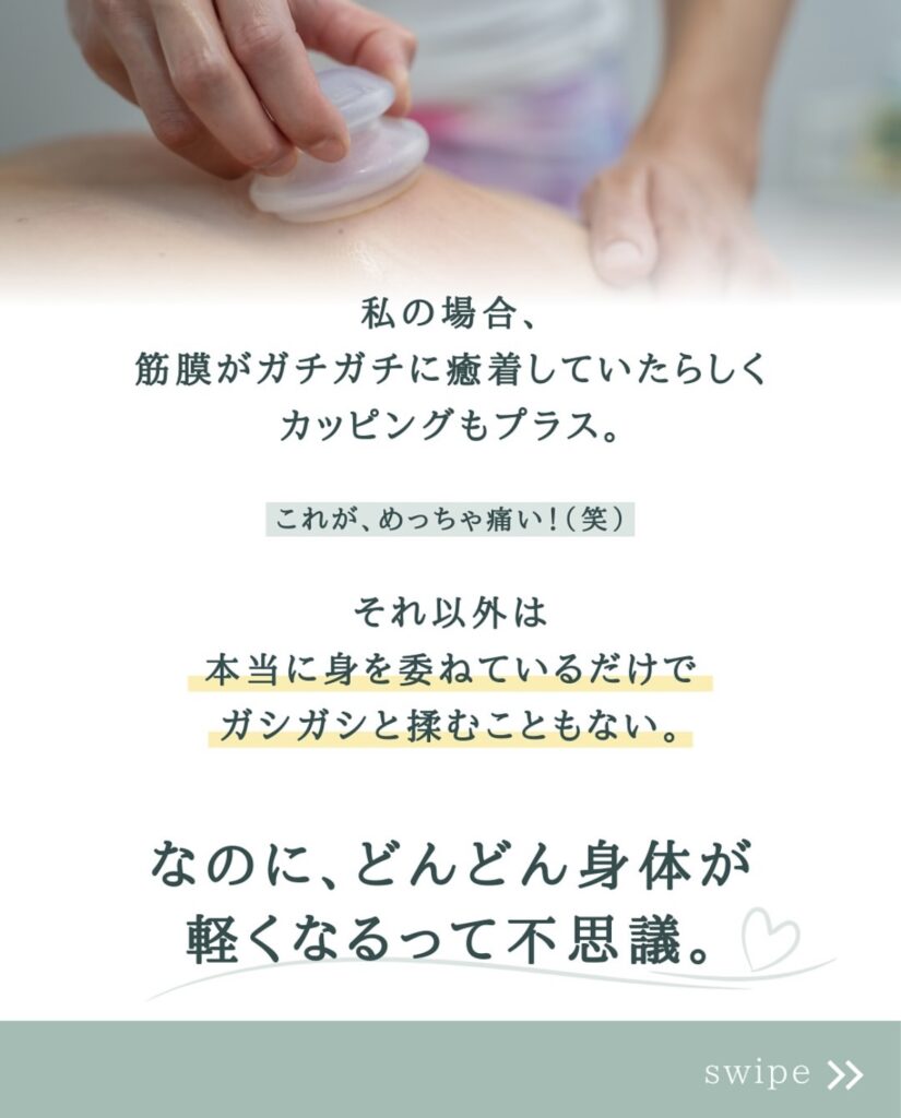 Paumeでは、解剖学に基づいたやさしい圧で、筋膜のねじれや張りを解放。